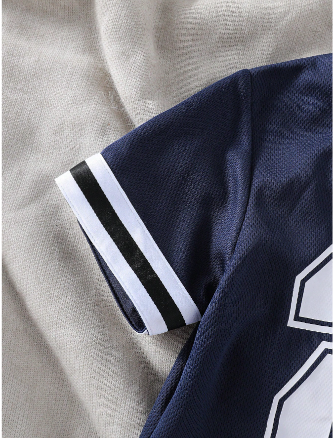 SHEIN 2 Parça/Set Genç Erkek Çocuk Spor Günlük Yuvarlak Yaka Kısa Kollu Sayı Baskılı Tişört ve Baskılı Spor Şort Takımı Şerit Detaylı, ilkbahar ve yaz aylarında aktif erkek çocuklar için tasarlanmış şık ve rahat bir kıyafet setidir. Set, cesur sayı baskılı klasik yuvarlak yakalı bir tişört ve modern atletik bir görünüm için trend şerit detaylarıyla zenginleştirilmiş hafif baskılı spor şorttan oluşmaktadır. Nefes alabilen, yumuşak kumaştan ve rahat kesimden üretilen bu set, erkek çocukların gün boyu serin ve rahat kalmalarını sağlarken kolay hareket etmelerine olanak tanır. Günlük giyim, spor, açık hava oyunları, okul, partiler ve tatiller için mükemmel olan bu çok yönlü iki parçalı kıyafet, sportif stili günlük maceralar için pratik konforla birleştirir.