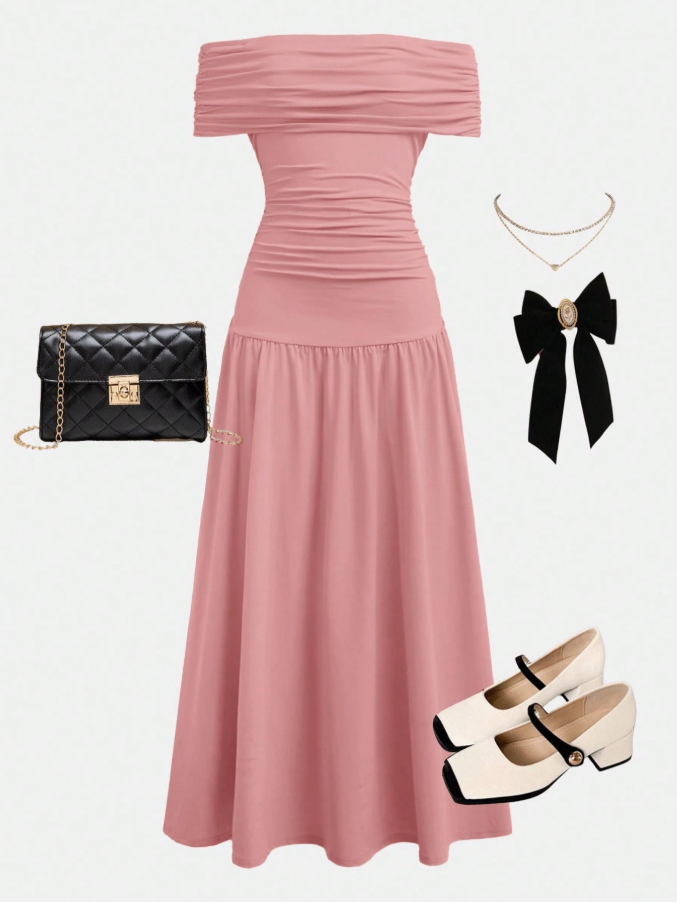 SHEIN Genç Kız Çocukları İçin Düz Pembe Zarif Retro Örgü Tek Omuzlu Pileli Uzun Elbise, her özel anı daha da özel kılmak için tasarlanmış zarif ve şık bir parçadır. Yumuşak düz pembe rengiyle dikkat çekiyor. read more
