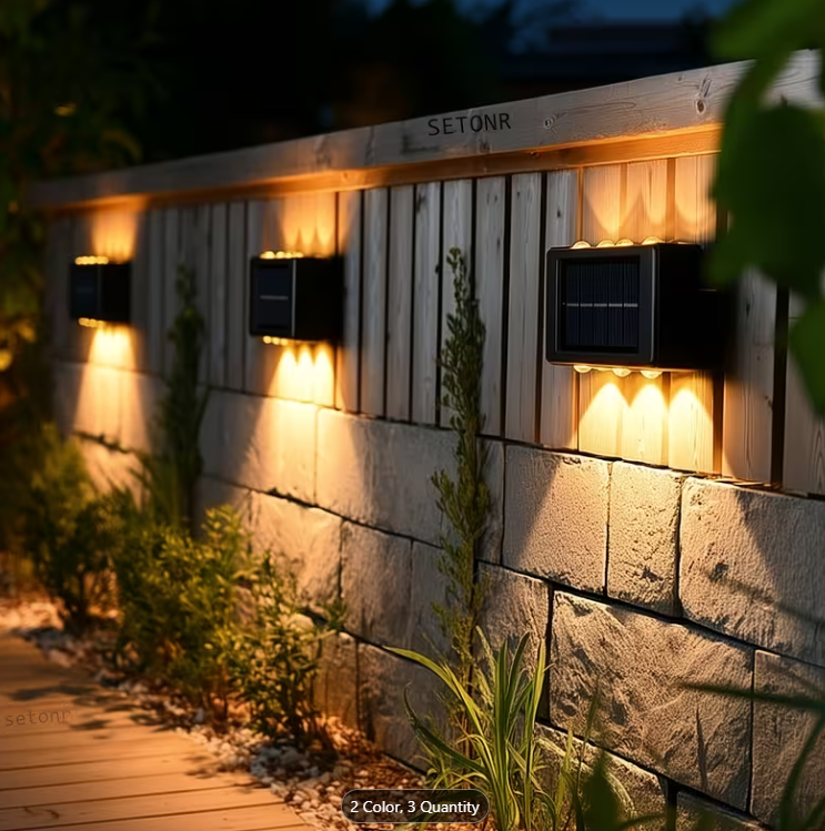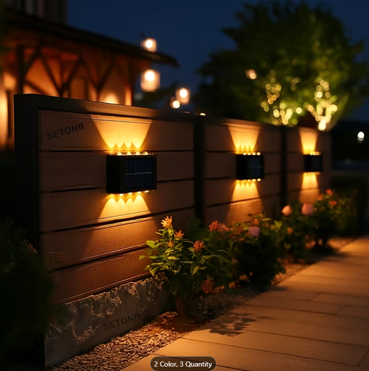 Powered entirely by the sun with a built-in efficient solar panel and rechargeable battery, they automatically turn on at dusk and off at dawn, providing hassle-free lighting with zero electricity costs. Their durable, weather-resistant construction makes them perfect for mounting on fences, garden walls, patios, decks, balconies, and along walkways.