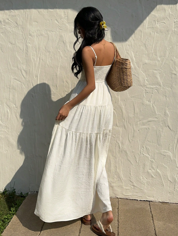 Sunnyshic Açık Kayısı Elbisesi ile zahmetsiz ve rahat bir stile kavuşun. Maksimum rahatlık ve kadınsı çekicilik için tasarlanan bu midi elbise, rahat ve bol bir beli, zarif ince askıları ve güzelce katmanlı etek ucu gibi şık detaylarla birleştirerek tatil gardırobunuz ve sıcak havalardaki gezileriniz için mükemmel bir eşlikçi haline geliyor.