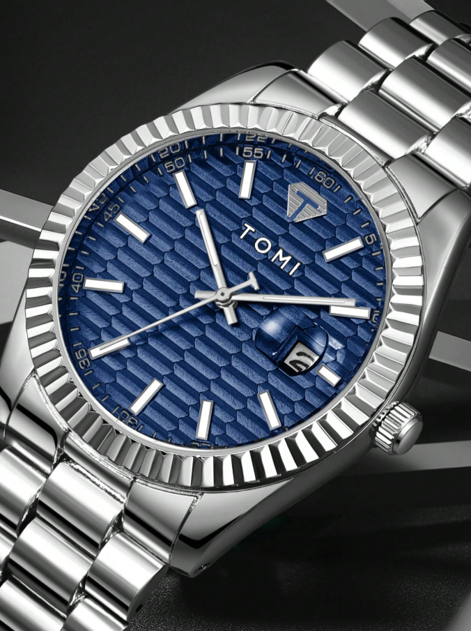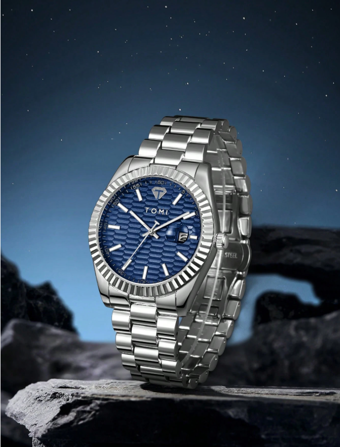 The TOMI Quartz Men’s Watch Set is a stylish fashion and business accessory gift, featuring a classic quartz wristwatch paired with a unique star & moon brooch ring for a complete look. Packaged in an elegant gift box, it’s perfect for special occasions like birthdays, anniversaries, and celebrations. With its modern design and reliable timekeeping, this set makes a great gift for men who love classy and trendy accessories.
