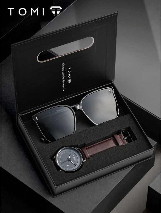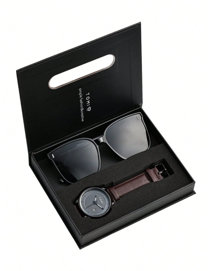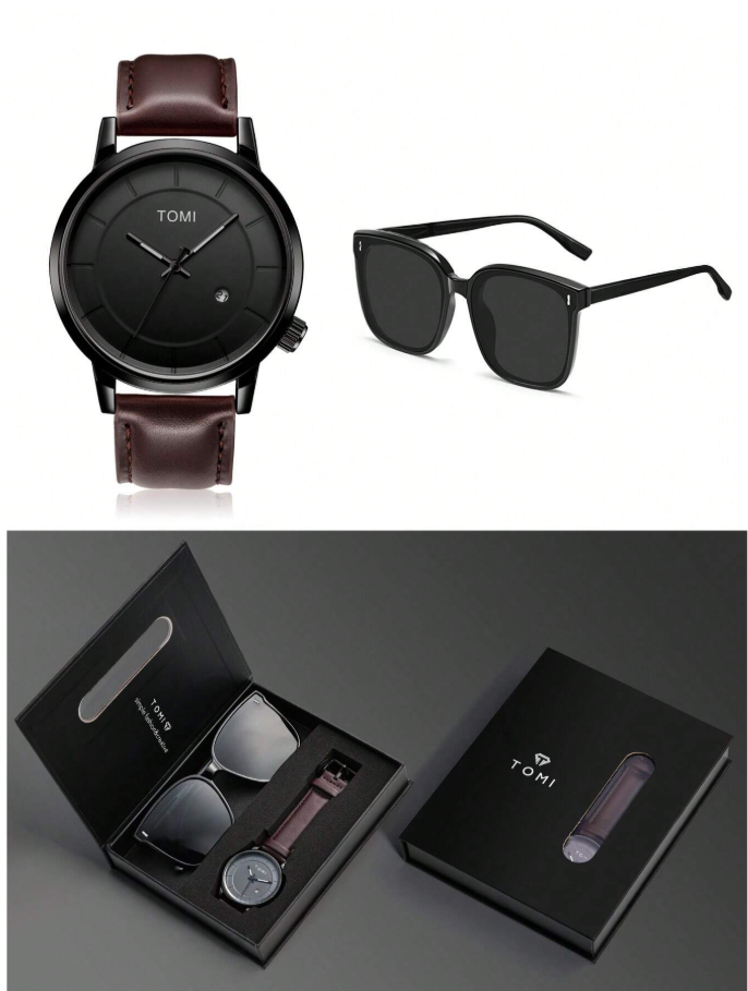 Upgrade your everyday look with the TOMI Quartz Men’s Watch, a perfect blend of fashion and functionality. Featuring a minimalist dial design with a clear calendar display, this watch offers precise quartz timekeeping while maintaining a modern, refined appearance. The durable zinc alloy strap adds a bold, polished touch, ensuring long-lasting wear and comfort. Paired with stylish sunglasses .