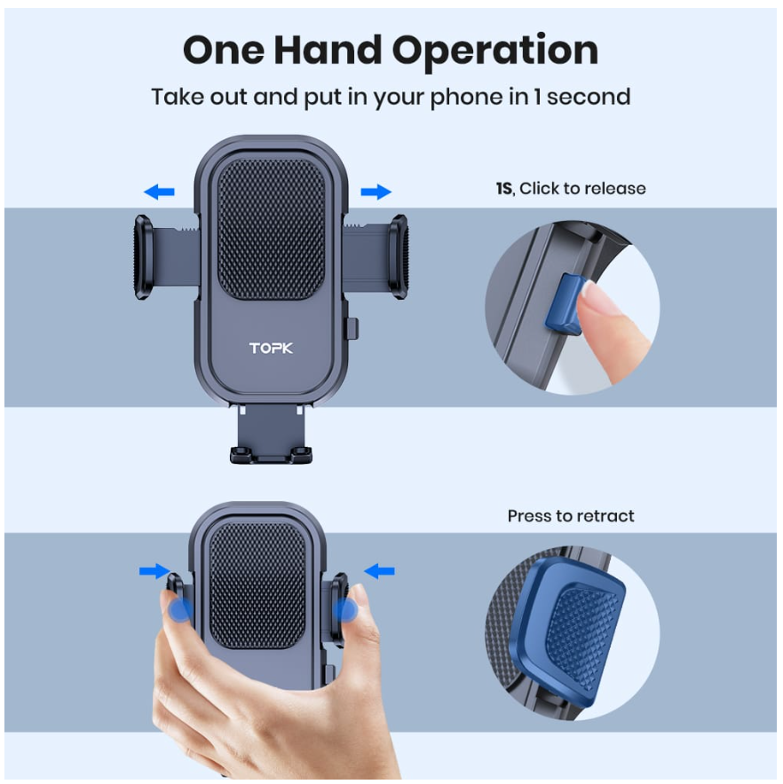 TOPK Araç Telefon Tutucusu ile dikkatinizi yolda tutun ve telefonunuzu güvenli bir şekilde gözünüzün önünde bulundurun. Evrensel uyumluluk için tasarlanan bu tutucu, aracınızın havalandırma ızgarasının çıtalarına güvenli bir şekilde takılan sağlam bir havalandırma klipsi tasarımına sahiptir ve cihazınızı navigasyon, aramalar ve medya kontrolü için ideal göz hizasına yerleştirir.