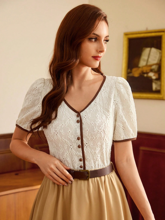 Elevate your autumn wardrobe with this Vintamour vintage elegant knit top, featuring intricate jacquard embroidery and textured floral patterns for timeless sophistication. The delicate contrast trim and button details add a touch of refined charm, creating a piece that feels both heirloom-quality and fashion-forward. Crafted from soft, structured knit fabric, it offers warmth and comfort while maintaining a polished silhouette.