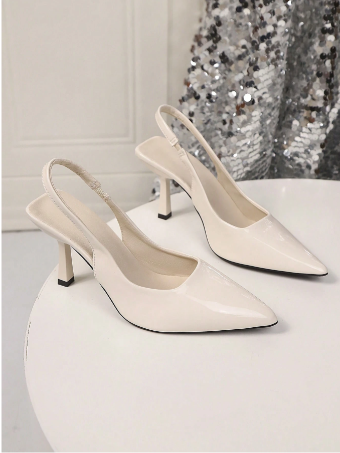 Women High Heel Pumps, Spring New Pointed Toe High Heels, Sexy Stiletto Black Patent Leather Sandals, 2-In-1 Convertible Shoes, White Sandals