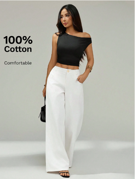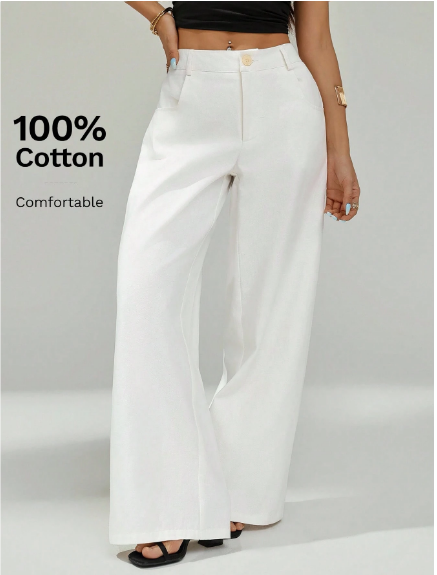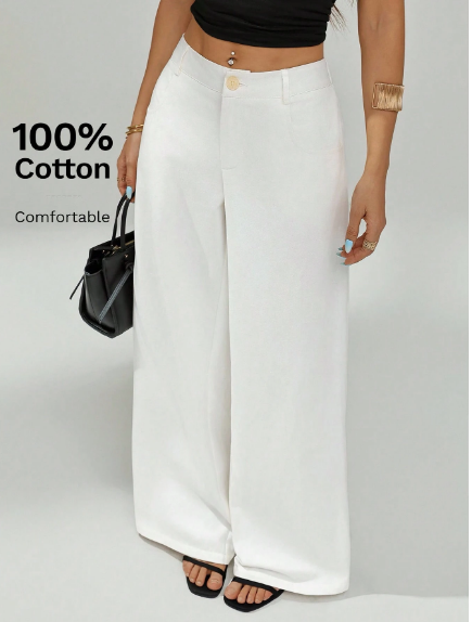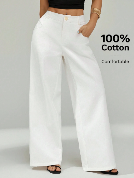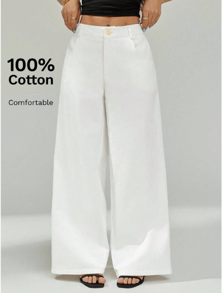 Kadınlar için tasarlanmış, şık ve rahat geniş paçalı iş pantolonu ile zarafet ve konforun mükemmel birleşimini deneyimleyin. 0 yumuşak, nefes alabilen pamuktan özenle üretilen bu pantolon, gün boyu rahatlık ve zarif geniş paça silüeti sunarak, profesyonel veya gündelik her ortam için sofistike ve akıcı bir görünüm sağlar.