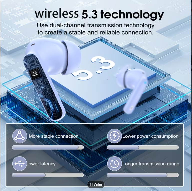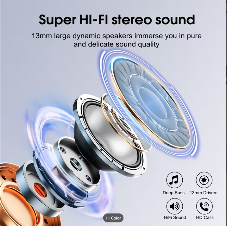 Bu kablosuz 5.3 kulaklıklarla kristal netliğinde sesin keyfini çıkarın. En yeni Bluetooth 5.3 teknolojisine sahip olan bu kulaklıklar, ister çalışırken, ister egzersiz yaparken, ister dinlenirken olağanüstü bir dinleme deneyimi için istikrarlı, sorunsuz bir bağlantı ve zengin bas stereo ses sunar.