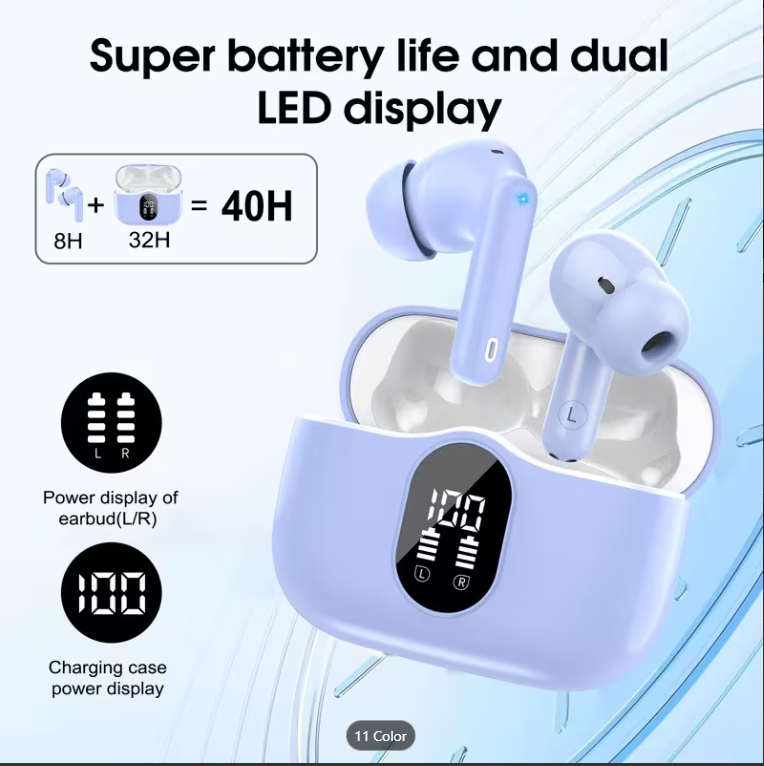 Kablosuz Kulaklık, 5.3 Vitesli Kablosuz Kulaklık, Bas Stereo Ses, Gürültü Engelleme Özellikli Mikrofon ve LED Ekran, Kulak İçi Tasarım, 36 Saat Çalma Süresi, Dizüstü Bilgisayar, Tablet, Cep Telefonu ve Spor İçin Uygun
