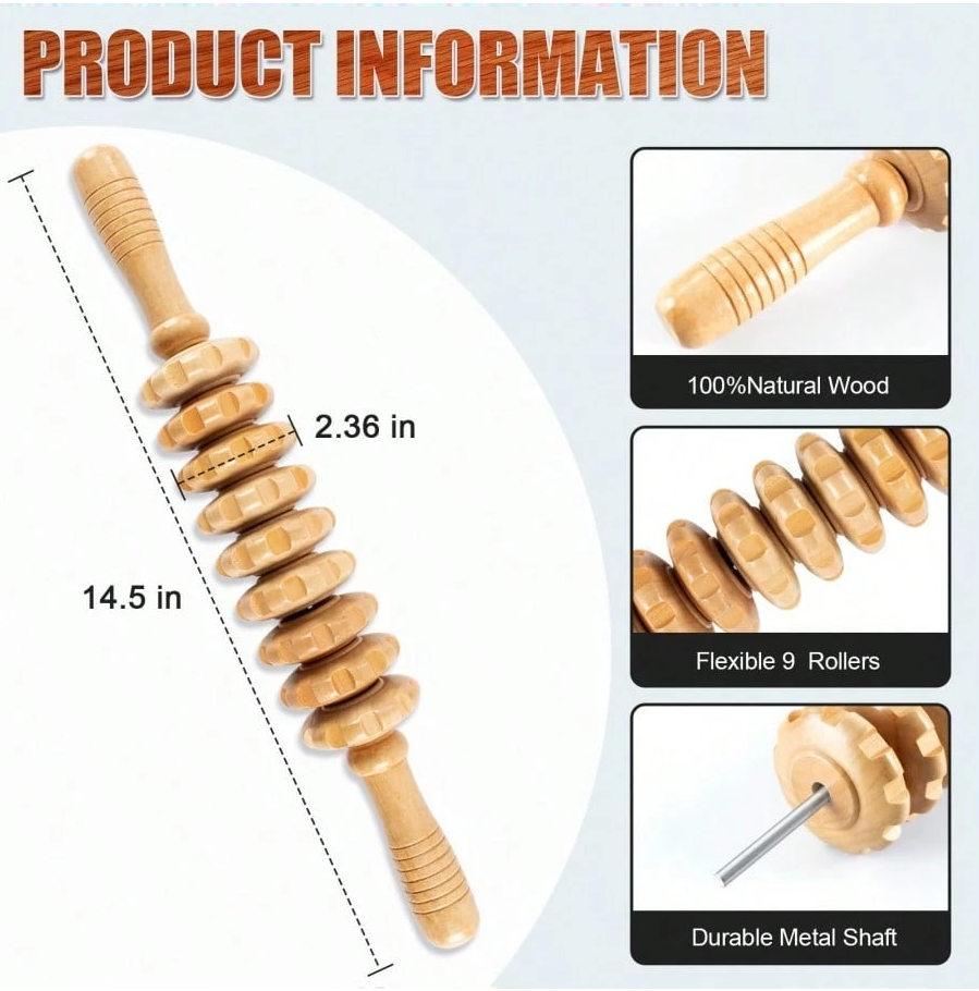 This **Wooden Massage Roller Stick** is a multipurpose deep tissue massage tool designed to relieve muscle tension and improve circulation in areas like the **waist, thighs, legs, calves, and arms**. Made with strong, smooth wooden rollers, it helps reduce soreness, loosen tight muscles, and support faster recovery after workouts. Perfect for home, gym, or daily use, this muscle roller provides an effective self-massage experience for relaxation and body shaping.